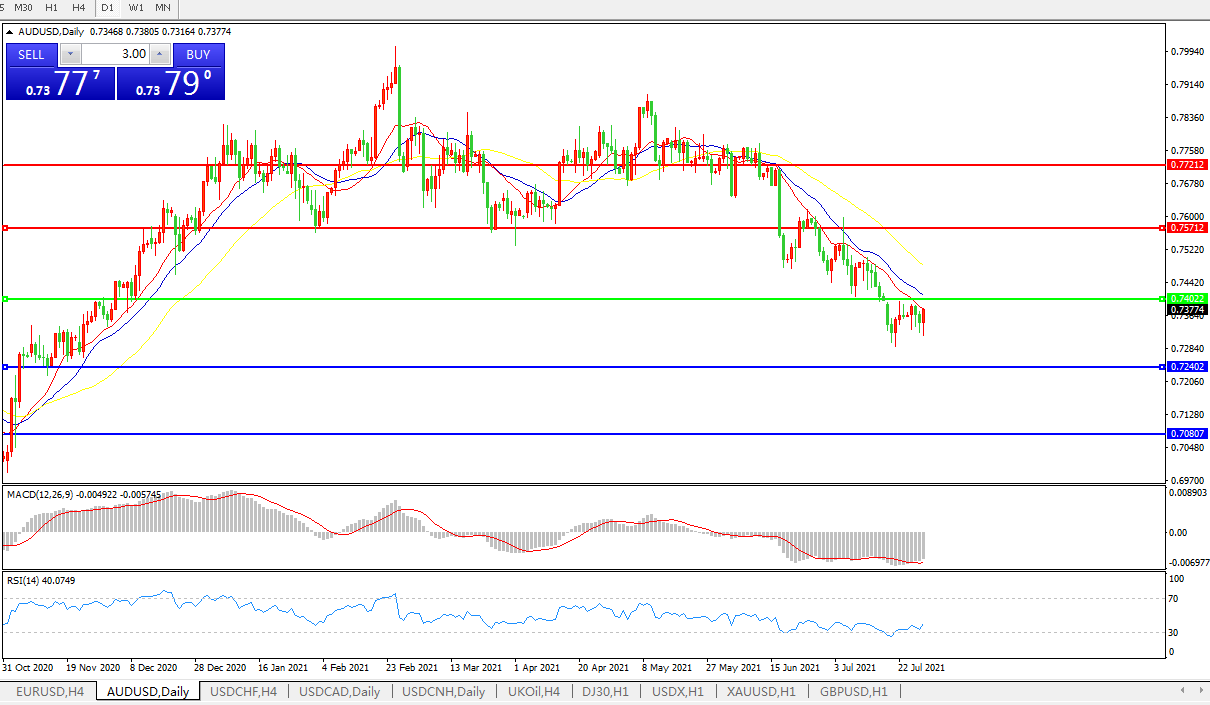 交易策略:0.7400下方看跌,目标0.7240、0.7080