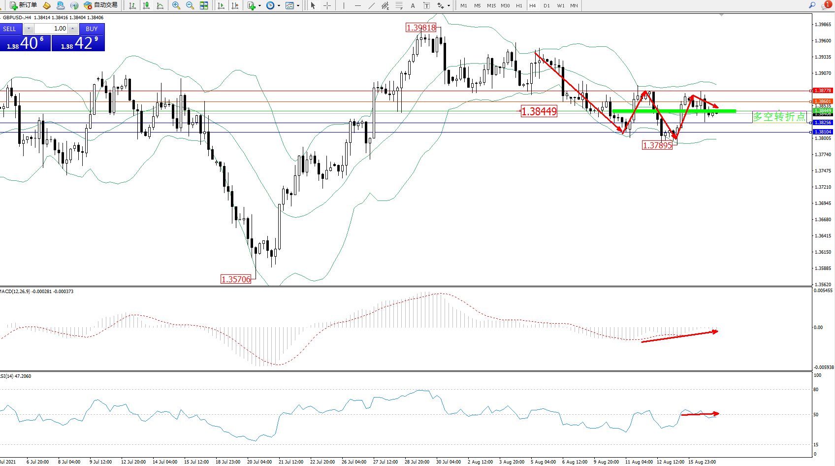 交易策略:1.38449下方看跌,目标1.38256、1.38104