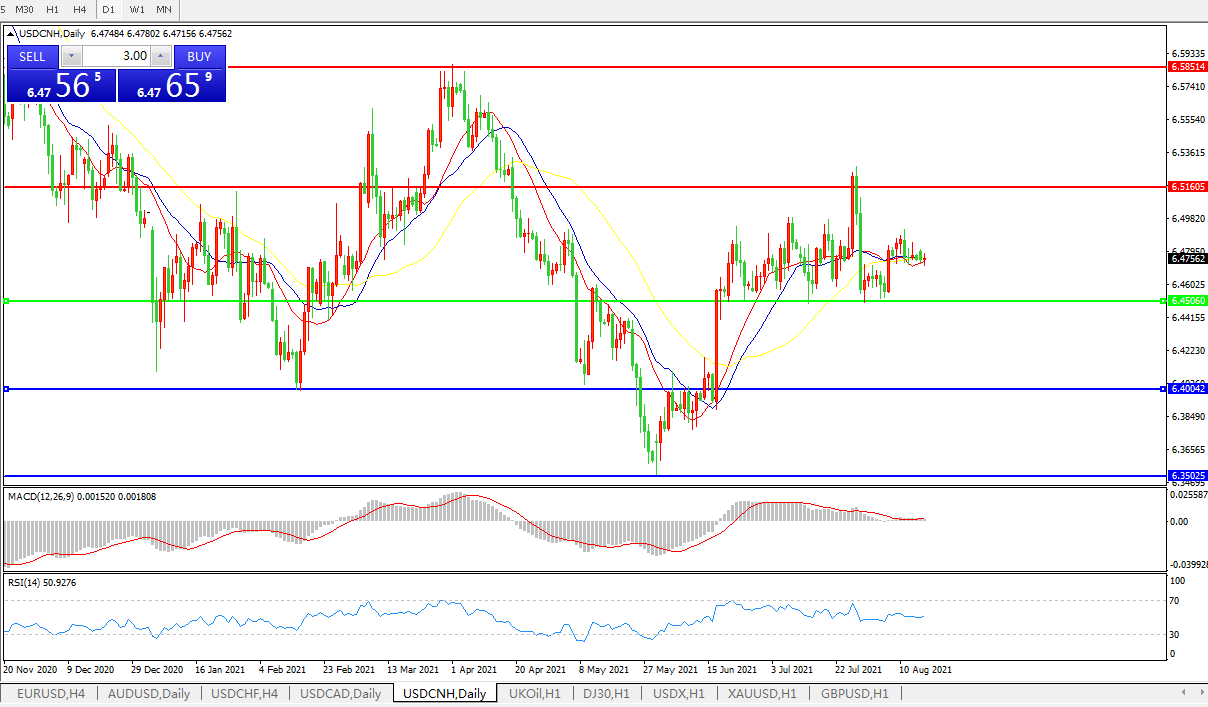 备选策略:在6.4505之下,看跌,目标价位为6.4000,然后为6.3500。