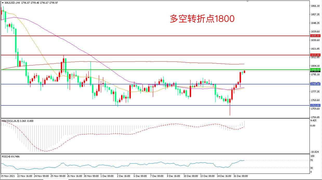 交易策略:在1800.00之上看涨,目标1815.00       1835.00