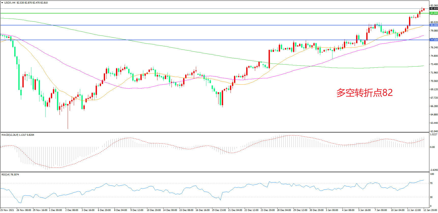 交易策略:在82.00之上看涨,目标85.00 88.00