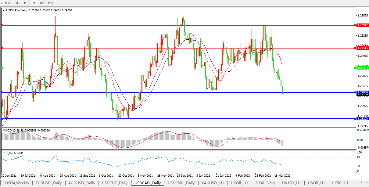 美元兑加元USDCAD 日线图: