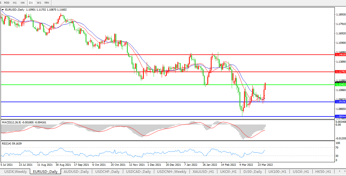 欧元兑美元处于3月1日以来的最高水平,尾盘上涨0.66%,至1.1157;尽管对俄乌谈判的乐观情绪消退,但通胀报告引发了成本上升的预期,俄乌冲突加剧了成本上升,将迫使欧洲提前而非推迟升息,从而支撑欧元。Scotiabank economics资本市场分析师Derek Holt表示,在3月通胀数据公布前,欧元小幅上涨,在通胀数据公布后又获得了额外提振。