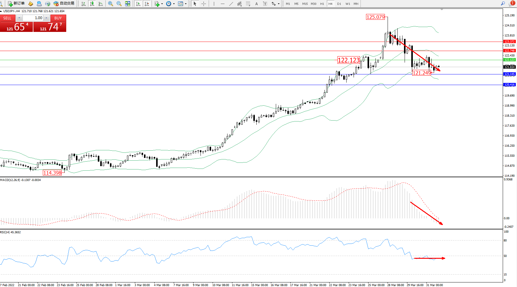 交易策略:122.123下方看跌,目标121.145、120.416