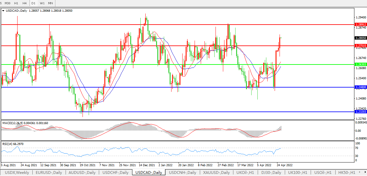 美元兑加元USDCAD 日线图: