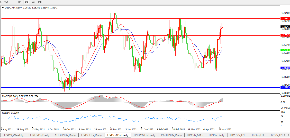 美元兑加元USDCAD 日线图: