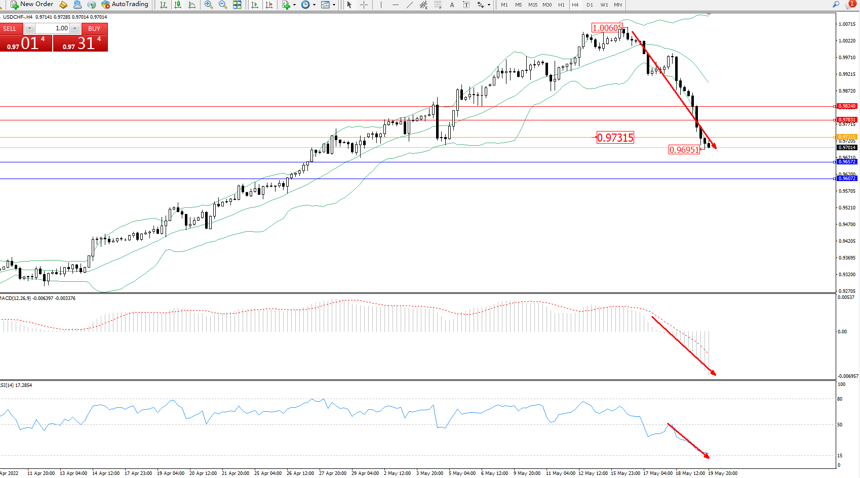 美元瑞郎USDCHF——4小时K线图显示: