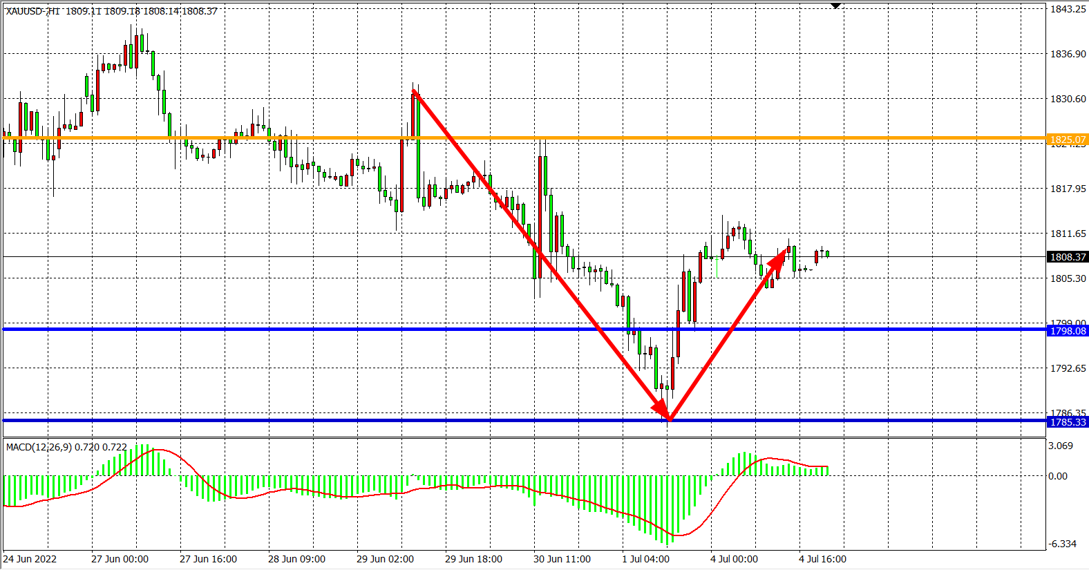 现货黄金XAUUSD    1小时图