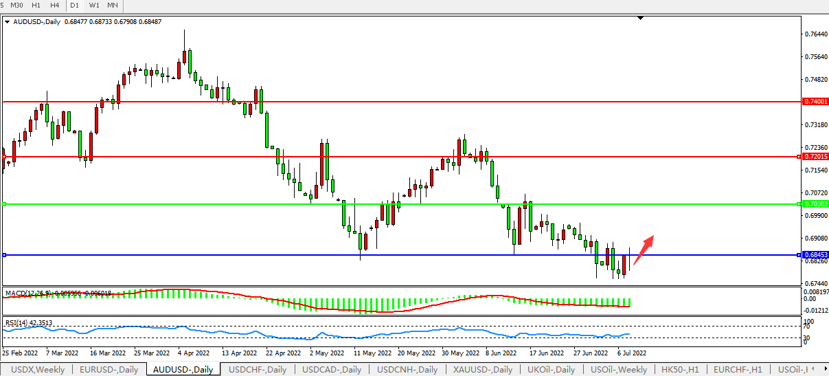 备选策略:0.7030上方看涨,目标0.7200、0.7400