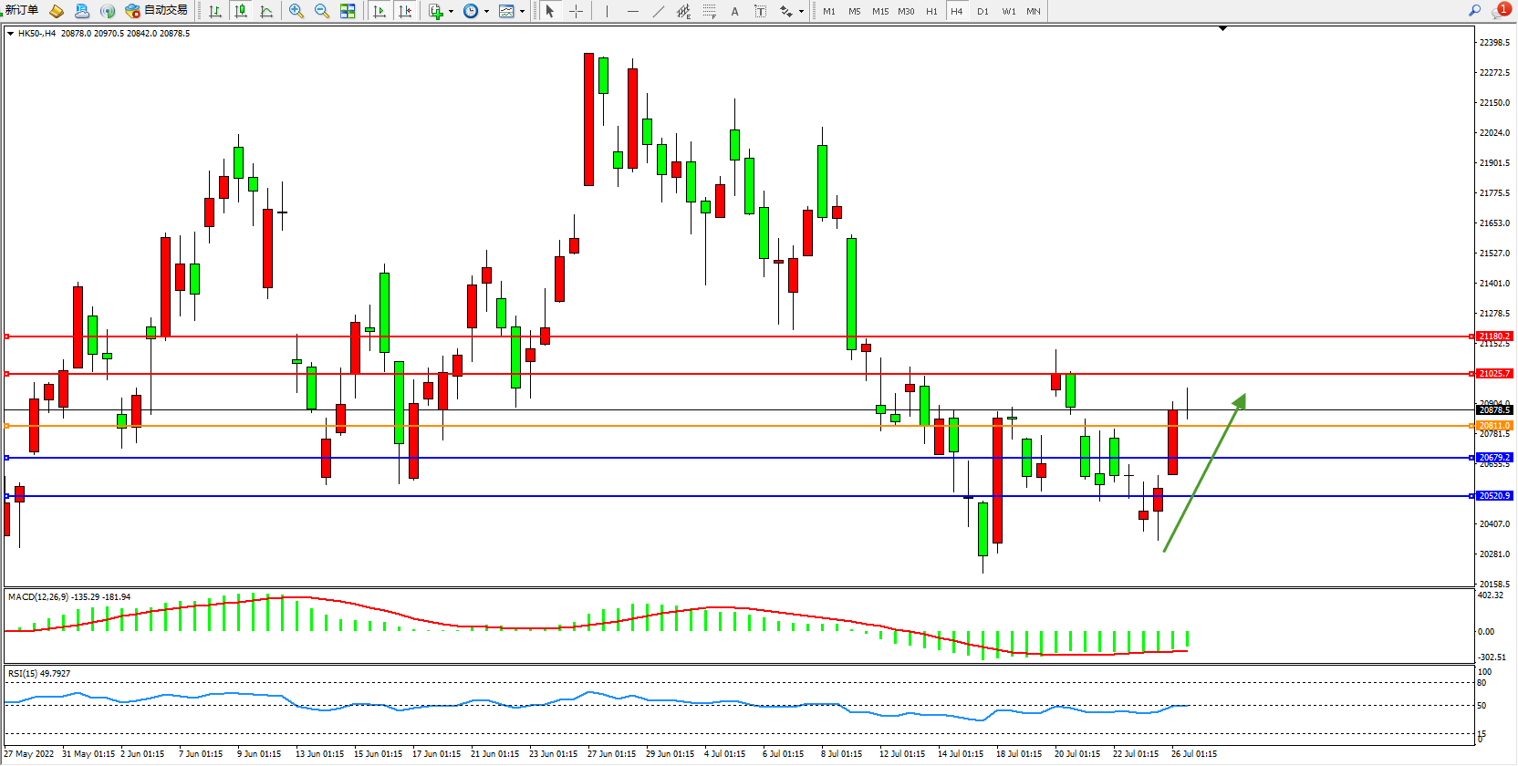 恒指HK50 4小时图