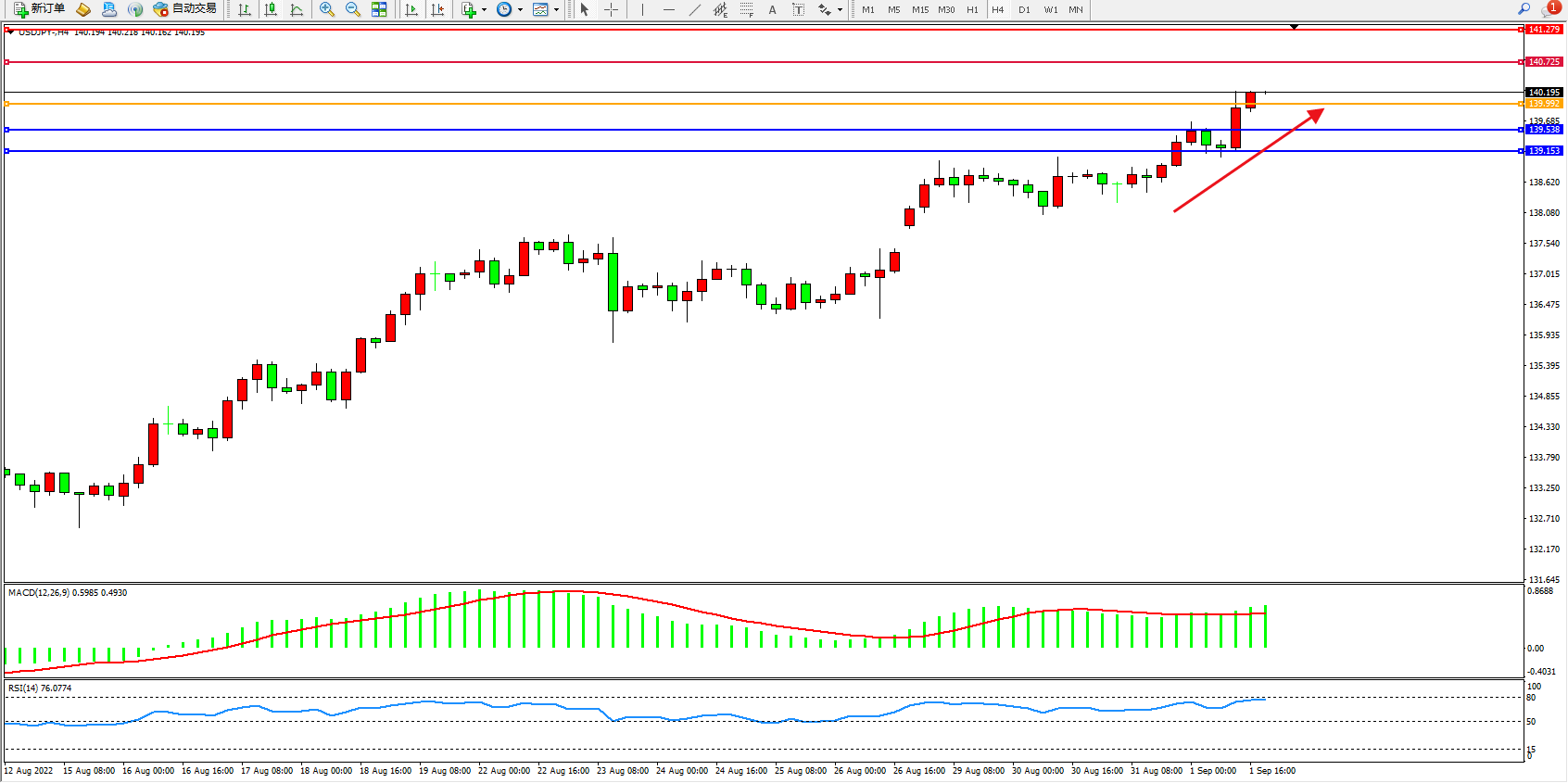 交易策略:139.992上方看涨,目标140.725、141.279