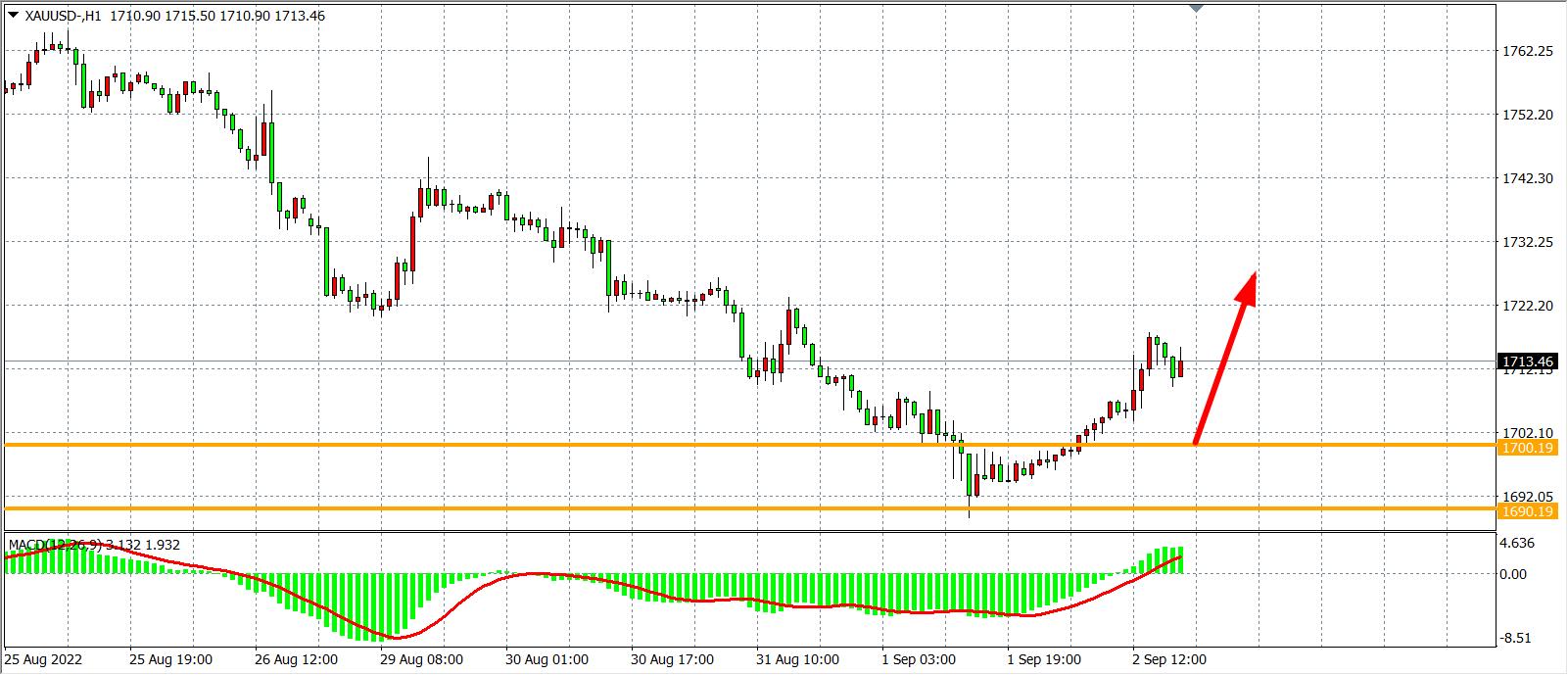 备选策略:在1700.00之上看涨,目标1720.00 1740.00