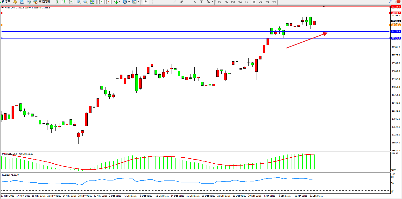 恒指HK50 4小时图