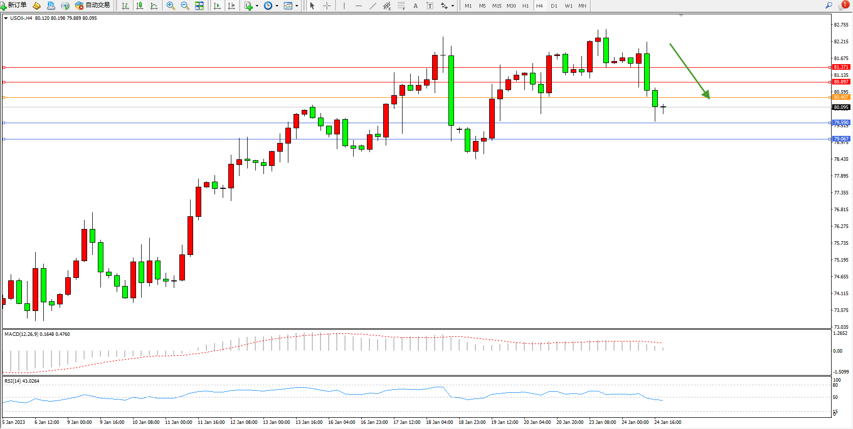 原油维持80.095附近震荡,尽管美国经济存在衰退可能,料限制全球最大石油消费国燃料需求,但全球最大原油进口国中国经济预期向好,交通出行需求全面回升,将给能源市场提供坚持支撑。