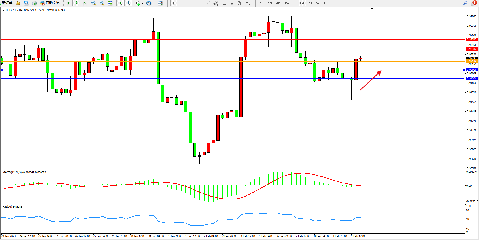 美元瑞郎USDCHF——4小时K线图显示: