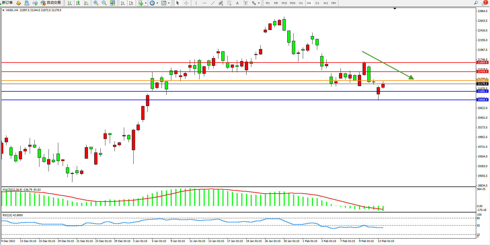 恒指HK50 4小时图