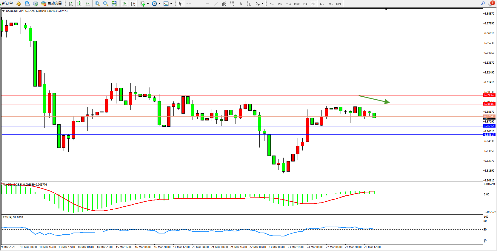 备选策略:6.87643上方看涨,目标6.88982 6.89962
