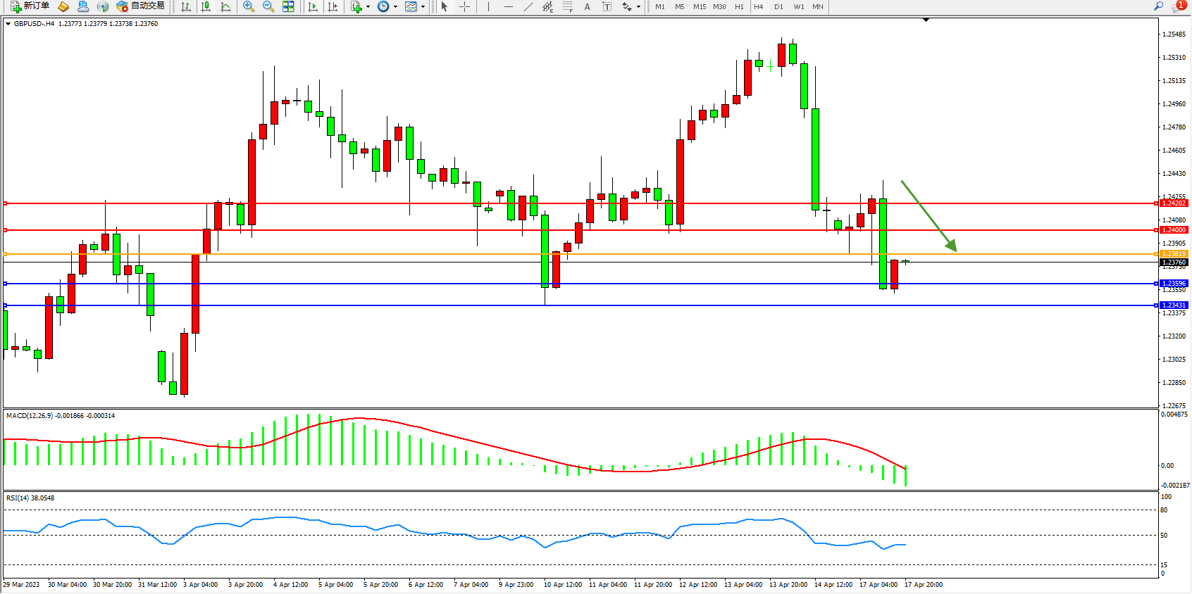 交易策略:1.23819下方看跌,目标1.23596 1.23431