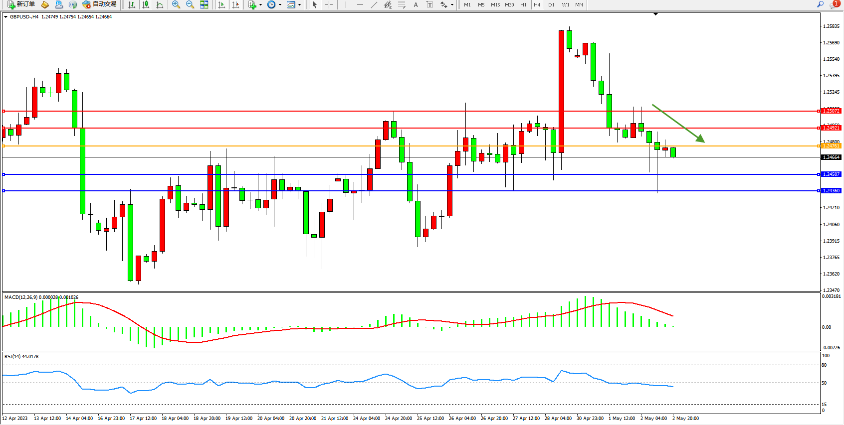 交易策略:1.24761下方看跌,目标1.24507 1.24360