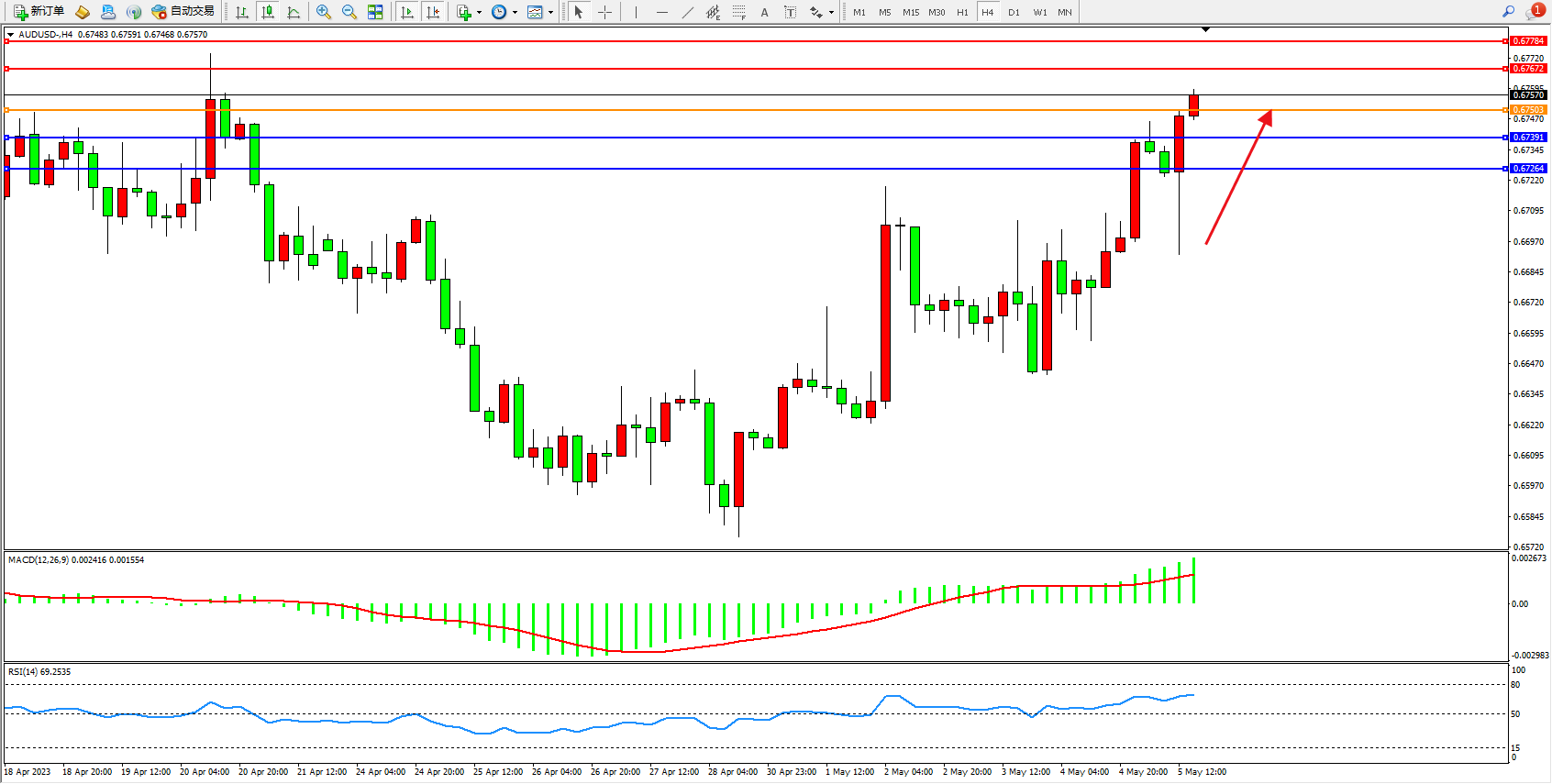 阻力位:0.67672 0.67784