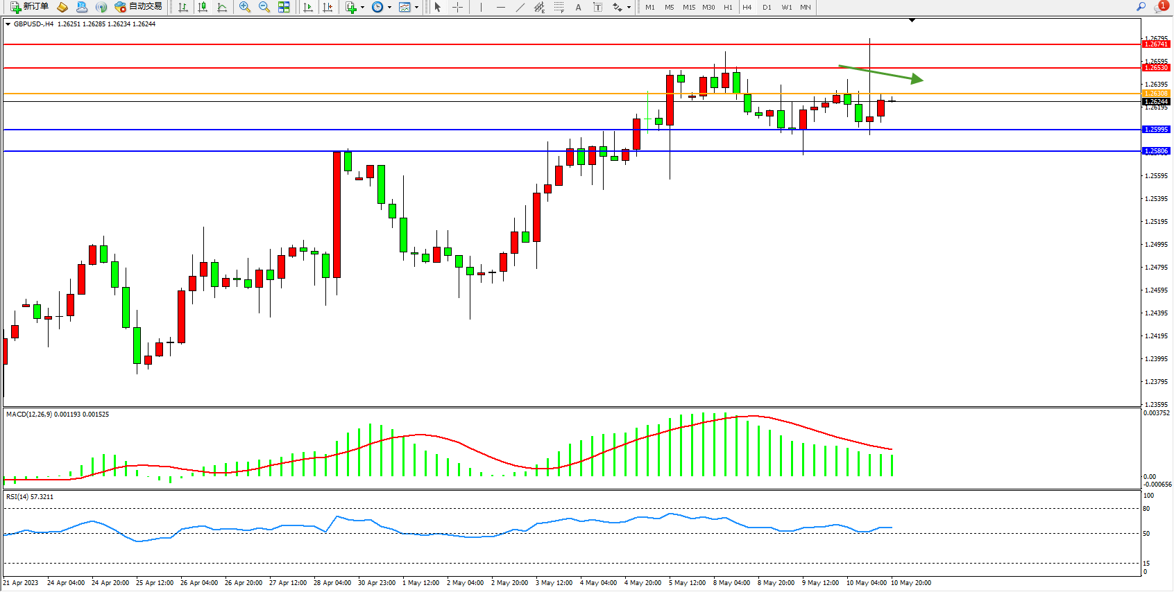 备选策略:1.26308上方看涨,目标1.26530  1.26741