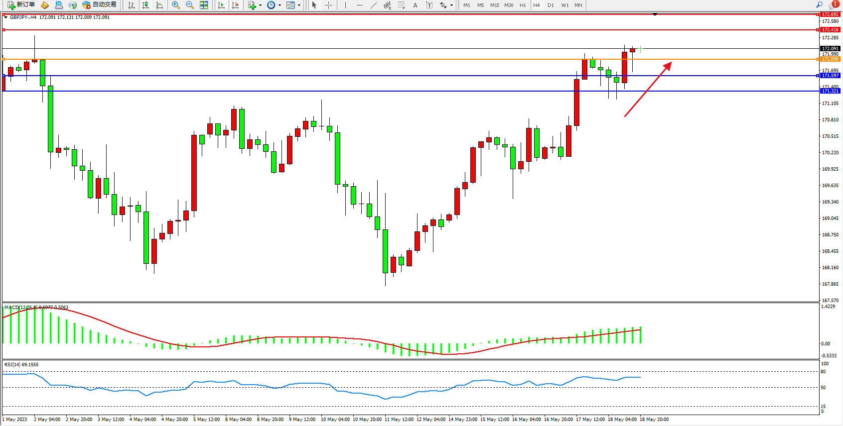 阻力位:172.416  172.692