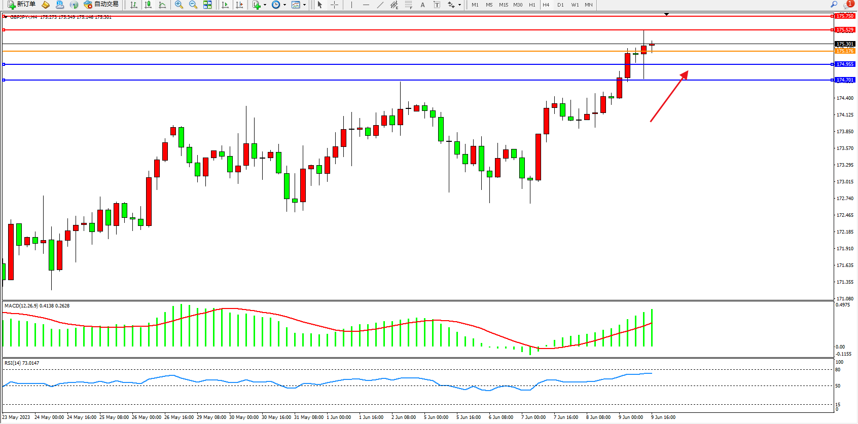 阻力位:175.529  175.750