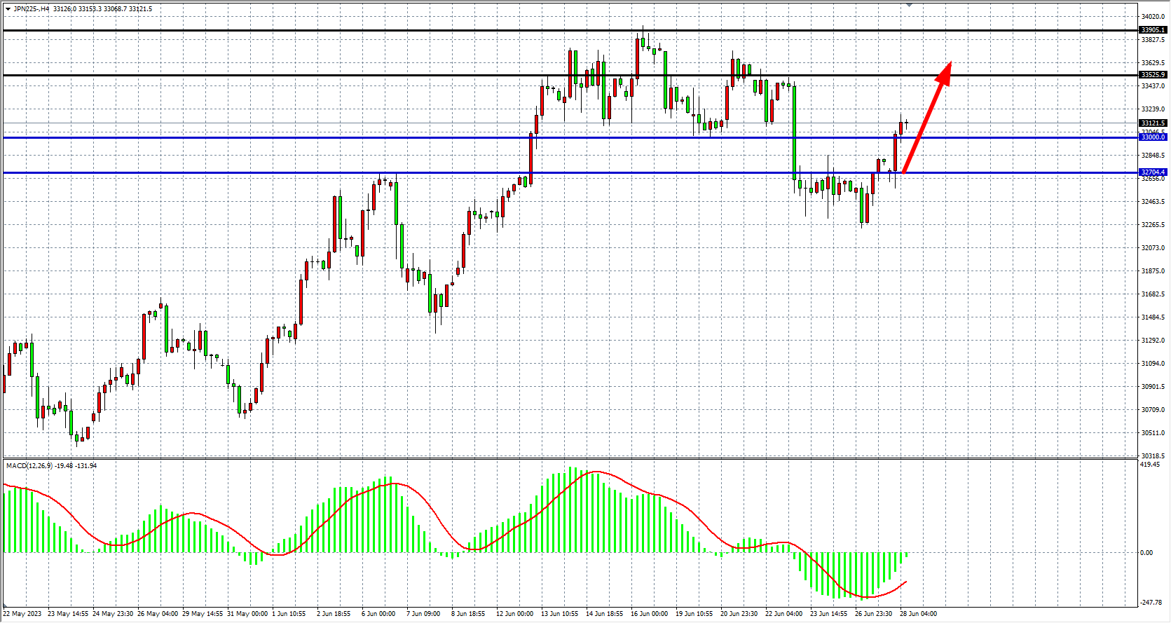 JPN225四小时图