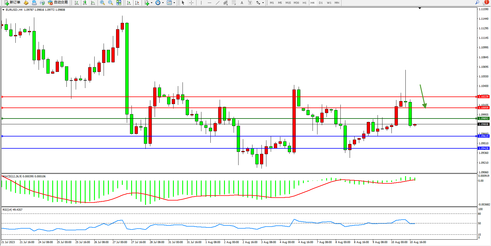 备选策略:1.09893上方看涨,目标1.10059  1.10229