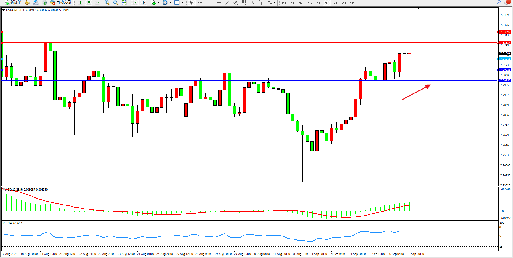 交易策略:7.31611上方看涨,目标7.32627 7.33297