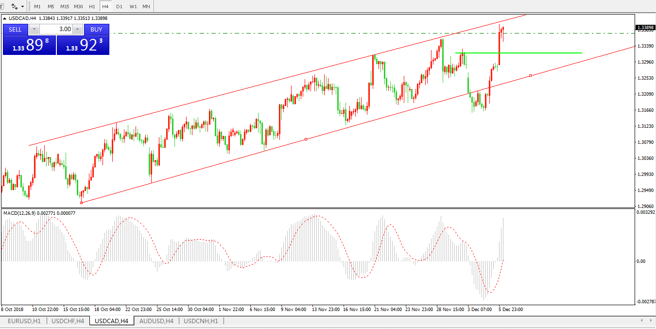 美元兑加元USDCAD4小时图