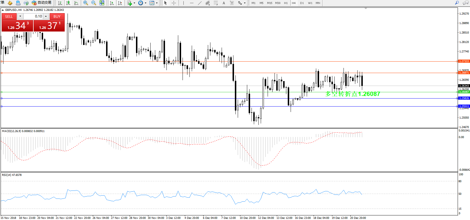 交易策略:1.26087上方看涨,目标1.26871、1.27333