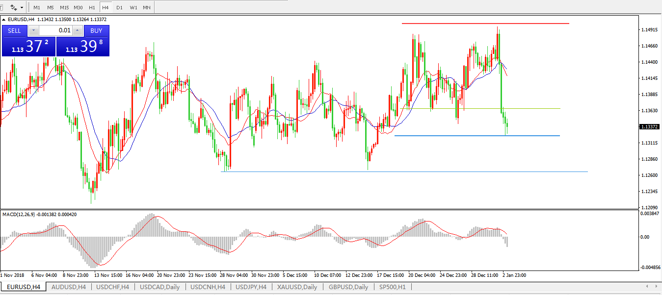 欧元兑美元EURUSD 4小时图:
