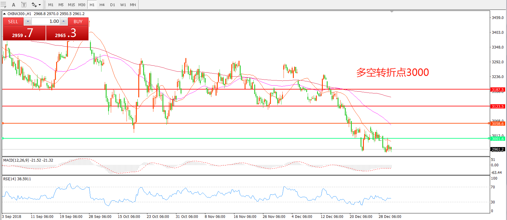 多空转折点:3000.00