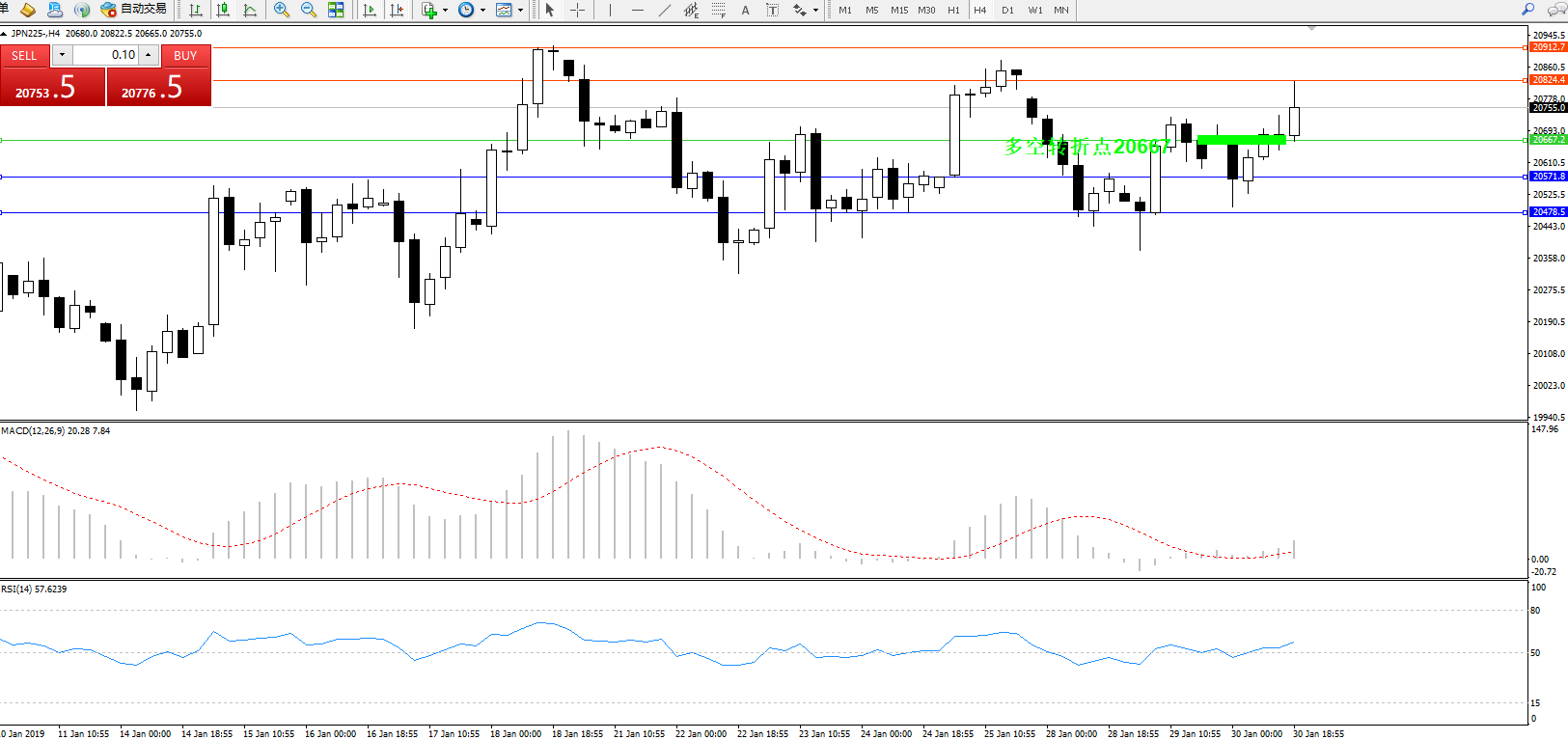 交易策略:20667上方看涨,目标20824、20912
