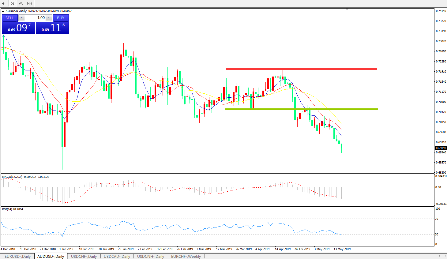 交易策略:在0.7110之下,看跌,目标价位为0.6920,然后为0.6850