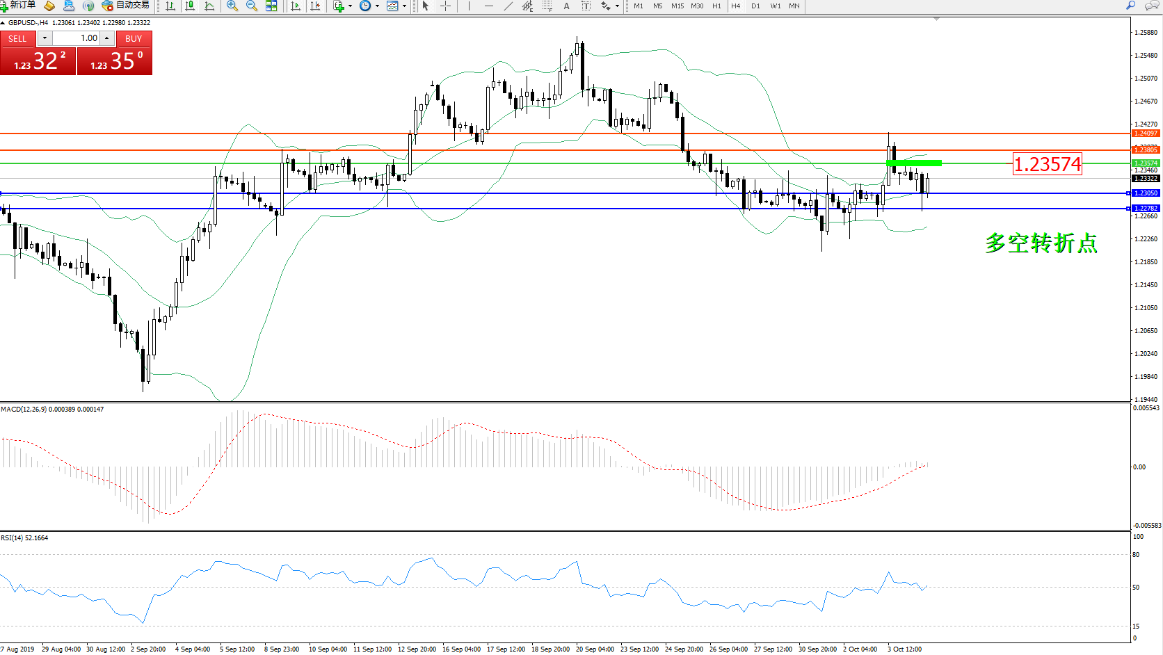 交易策略:1.23574下方看跌,目标1.23050、1.22782
