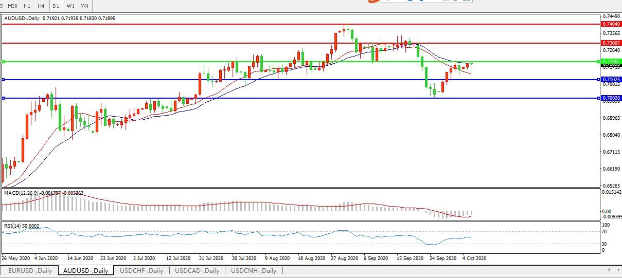 交易策略:0.7200下方看跌,目标0.7100、0.7000