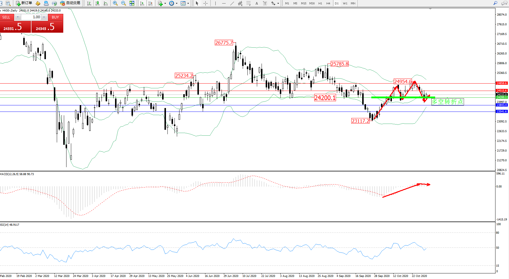 恒指HK50 ——日K线图显示: