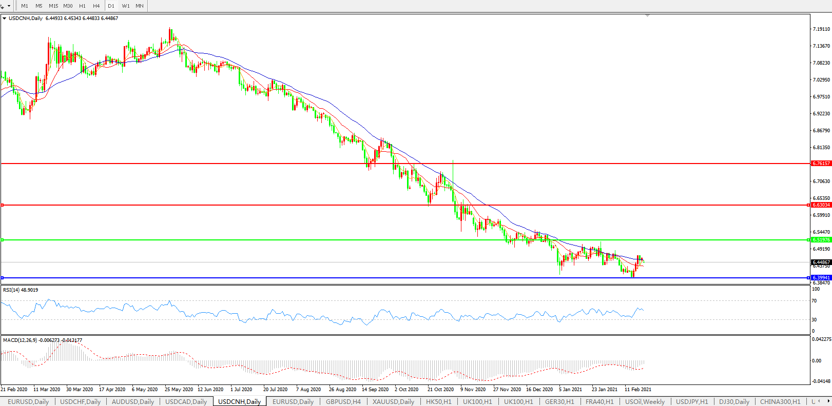 备选策略: 在6.5200之上,看涨,目标价位为6.6300,然后为6.7615。