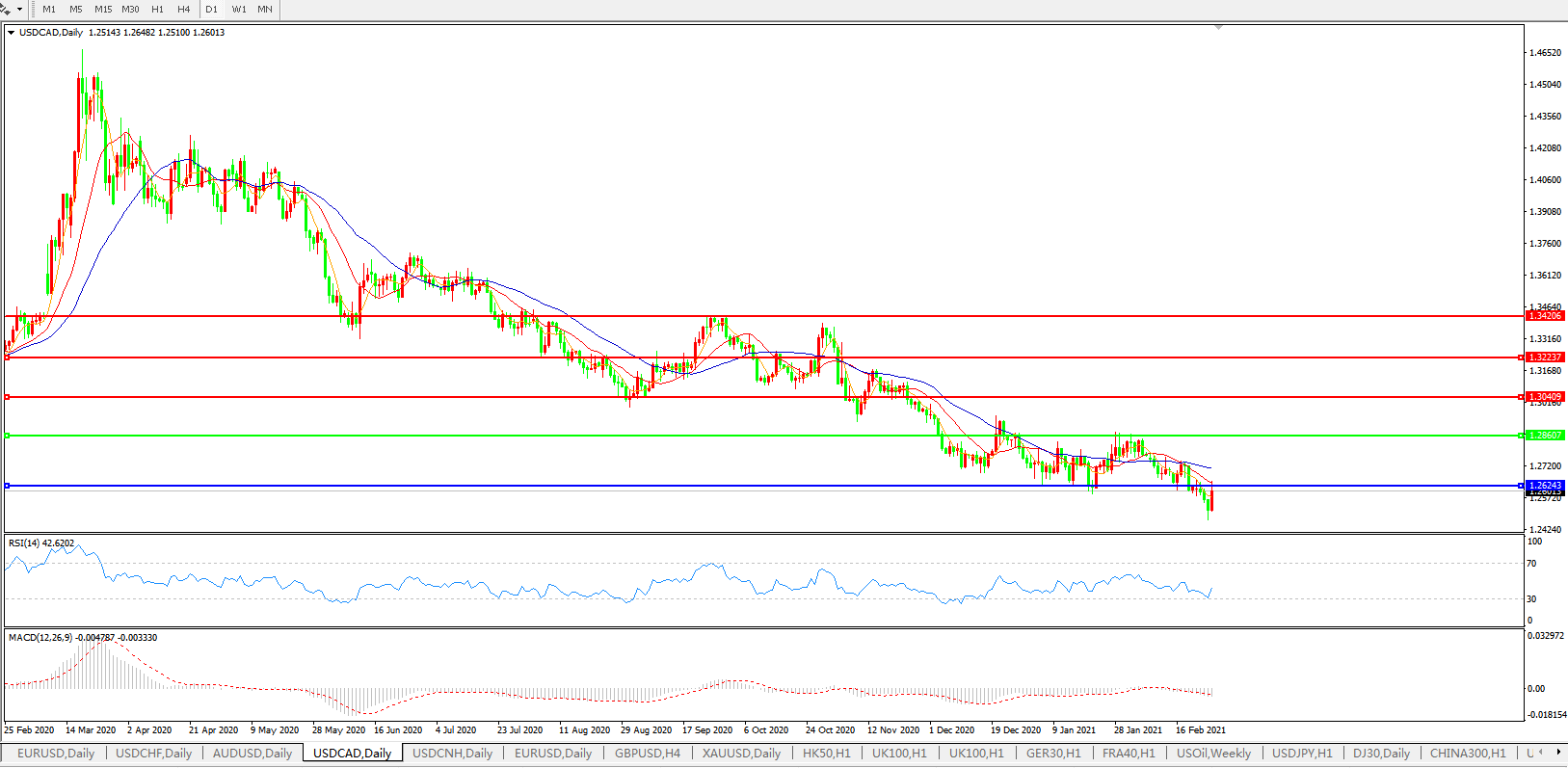 美元兑加元USDCAD 日线图:
