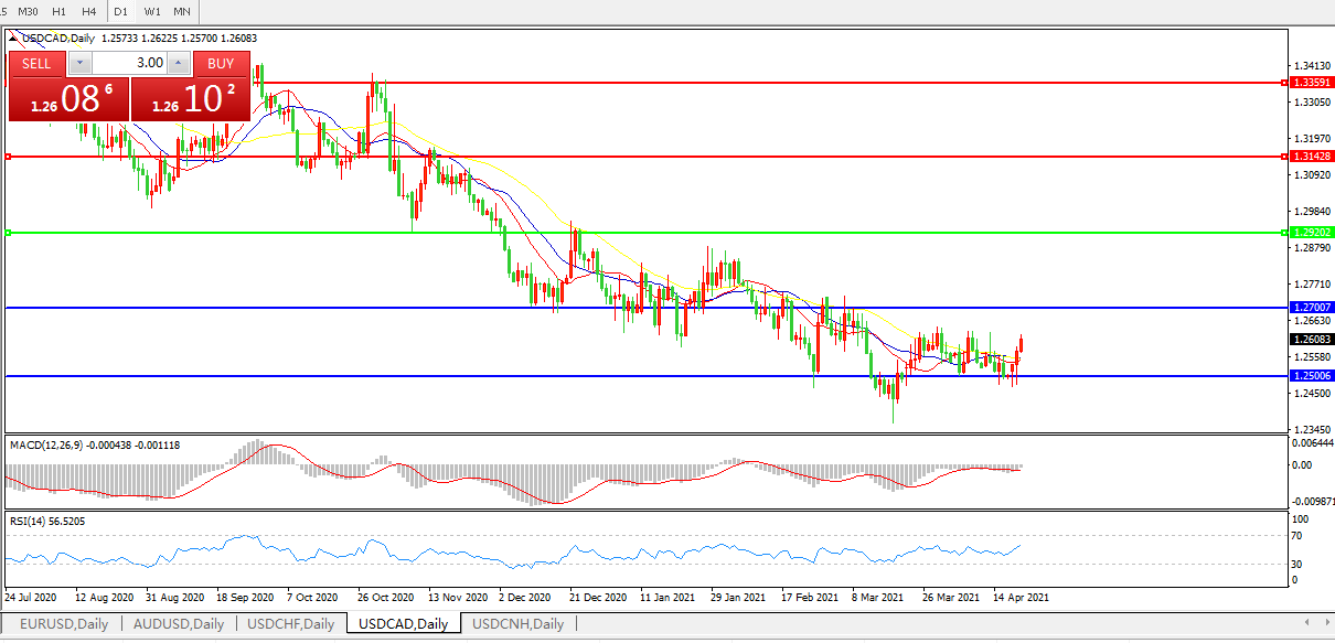 美元兑加元USDCAD 日线图: