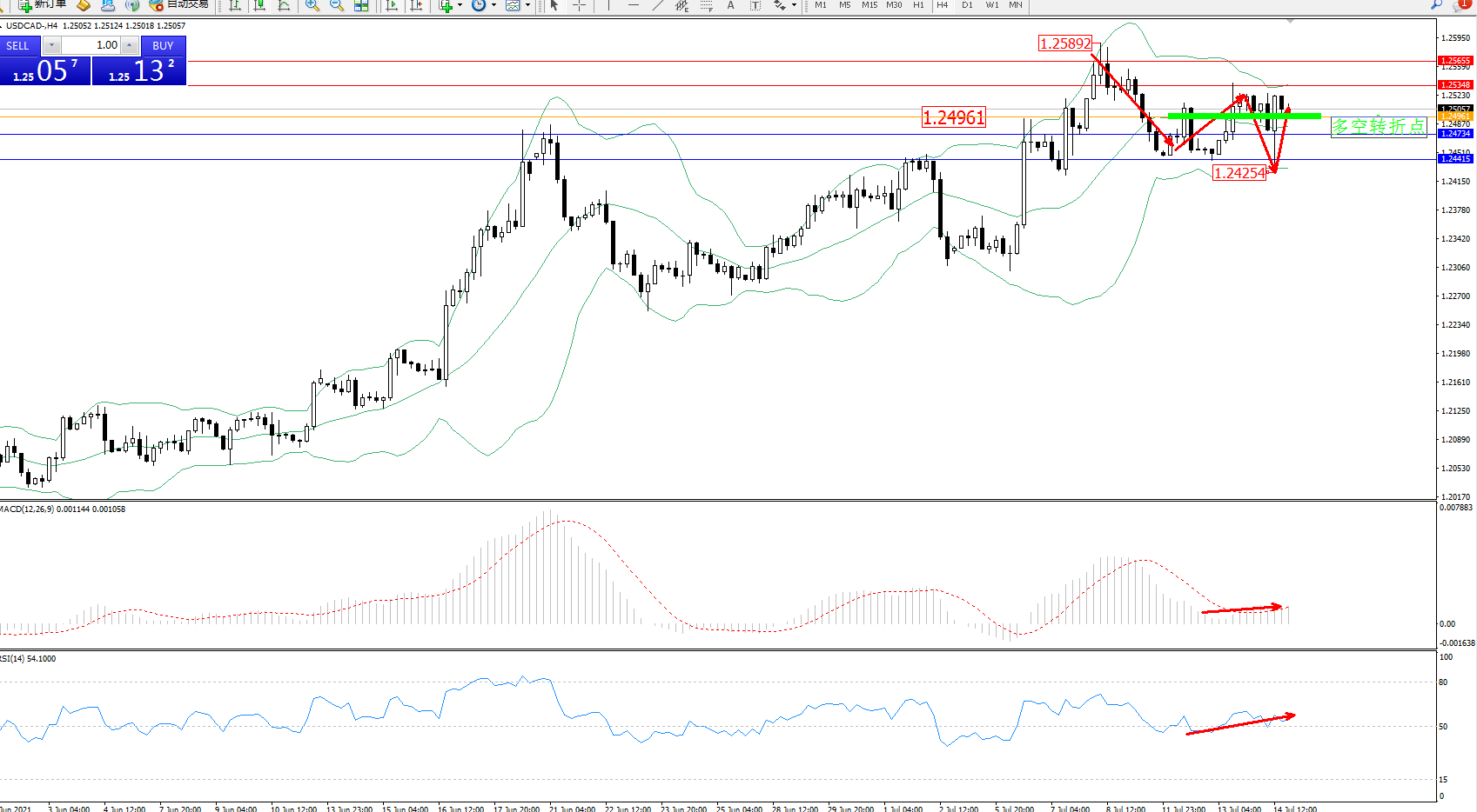 技术点评:多头动力延续布林带指标通道中上轨区间持续震荡上扬,高位抵达1.25892位置后遇阻回撤,短期纠结于中下轨区间整理后多头动力再度入场拉升,纠结于布林带指标通道中上轨区间震荡不断上移,布林带指标呈收口走势持续平移中,MACD指标处于多头区域高位回撤后纠结于0轴线上方弱势徘徊,RSI指标处于50均衡线附近持续整理后开始整理;