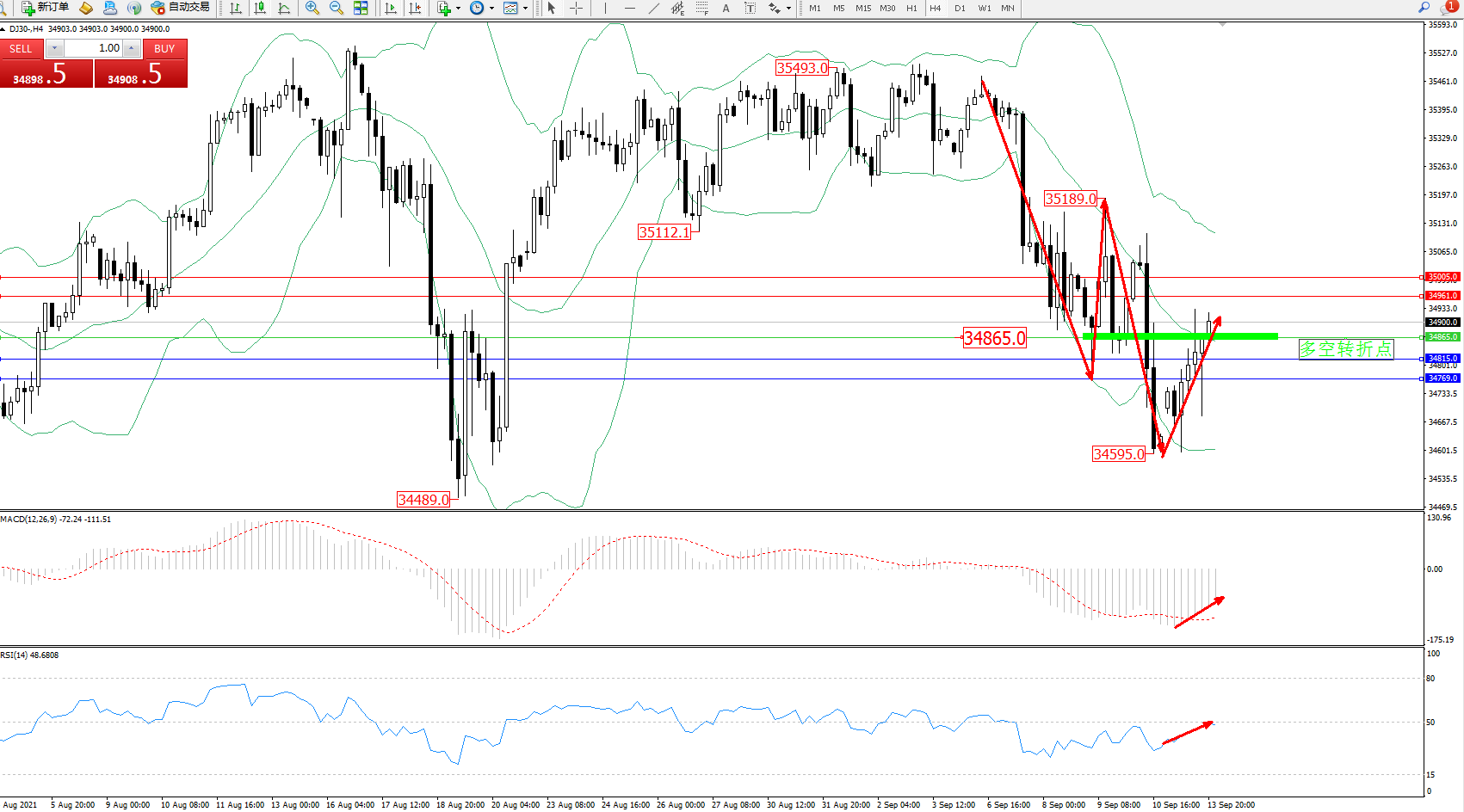 道琼斯指数9月13日(周一)收盘上涨263.95点,涨幅0.76%,报34871.67点;美国股市结束五连跌,交易员们关注即将到来的重要通胀数据,希望以此来评估对减码和加息时间的预期。周二公布的美国8月消费者价格指数升幅料将有所放缓。根据机构调查,8月份CPI可能同比上涨5.3%,7月份涨幅为5.4%。除了通胀,美国还将于本周公布零售销售和工业生产数据。