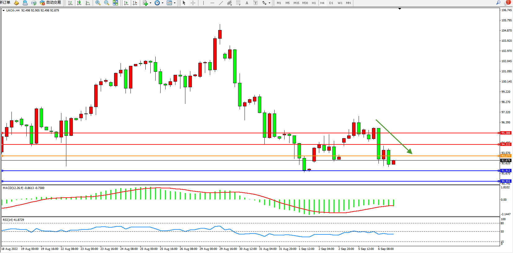 布油UKOil——4小时K线图显示: