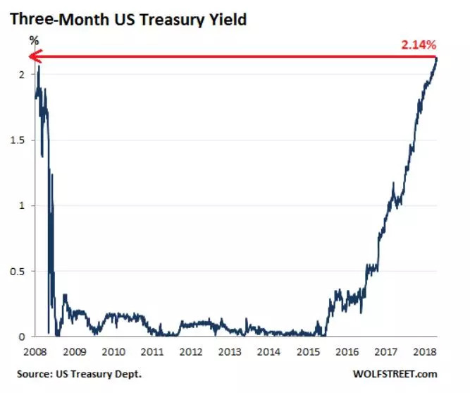 9月10日,3月期美债收益率为2.14%,处于美联储今年四次加息后2.25%- 2.50%的区间之中。