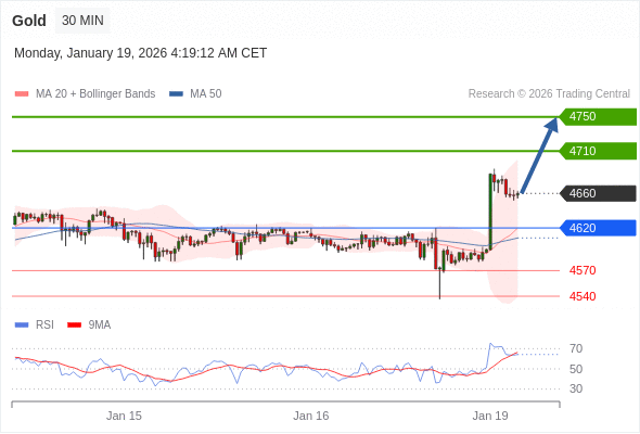 交易策略: 在 4620 之上,看涨,目标价位为 4710 ,然后为 4750 。